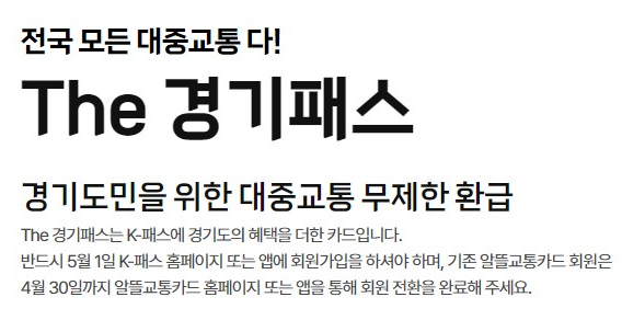5월 1일부터 본격적인 더 경기패스 사용이 시작됩니다. 이미 사전신청이 시작되어 미리 신청하고 계신분들도 많으실텐데요. 더경기패스 신청방법 및 K패스에서 전환방법, 더 경기패스 혜택등을 아래에서 바로 확인해보세요!!