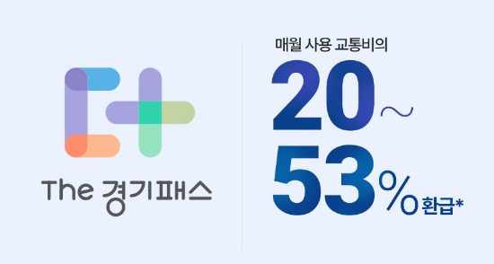 경기도민이라면 전국 어디에서든 월 15회이상 대중교통이용시 무제한으로 이용요금의 일정비율을 환급해드립니다.